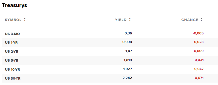 A livello di rendimenti notiamo come i dati macro in contrazione usciti in settimana, abbiano inciso sulle attese inflattive con i rendimenti in calo su tutte le scadenze in particolar modo su quelle più lunghe come il 10Y ed il 30Y: