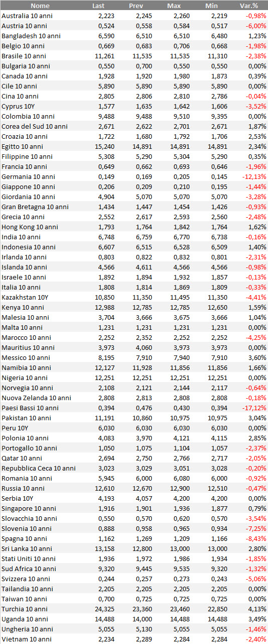Bond Governativi Mondo Weekly Ranking