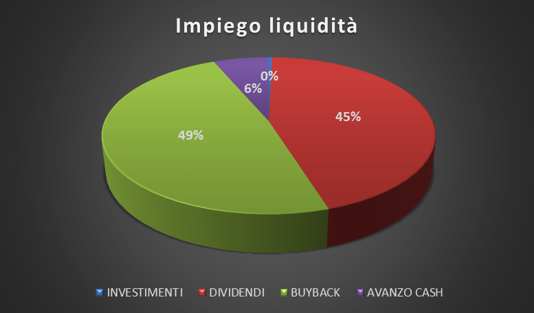 Come di consueto, il board ha proseguito la politica di allocazione della liquidità operata negli anni precedenti: il 45% del cash ha remunerato gli azionisti tramite i dividendi ($ 33,3 mln) mentre il 49% è stato destinato al buyback ($ 35,9 mln).