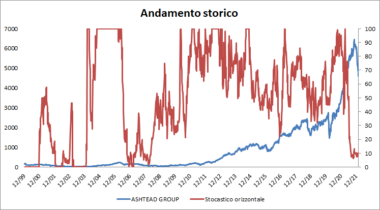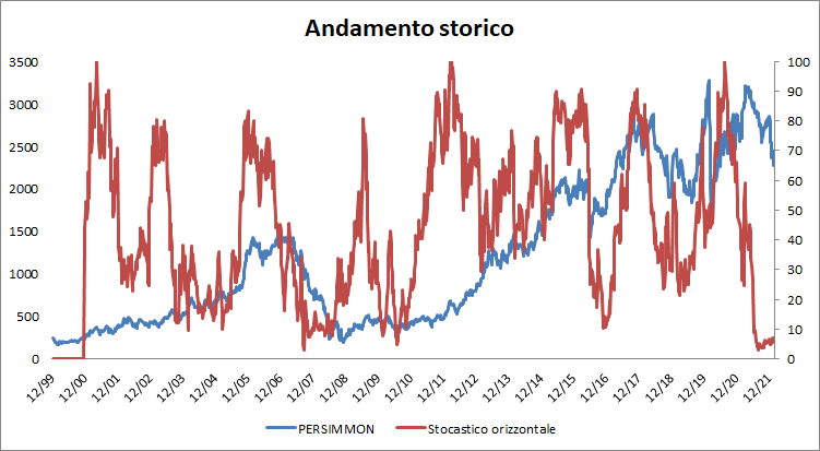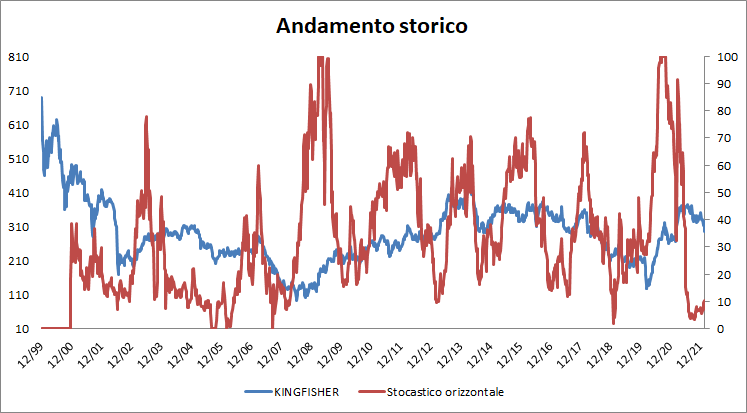 Un anno fa, lo Stocastico orizzontale del titolo aveva appena abbandonato quota 100 dirigendosi verso la parte inferiore individuata tra 0 a 30.