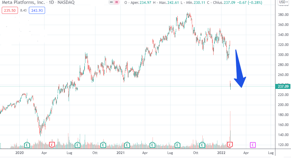 Tuttavia questi enormi sbalzi di umore che rappresentano l'essenza trascritta del nervosismo degli operatori, questa settimana è stata attratta quasi integralmente da Meta Platforms (Facebook) che ha perso 100 dollari per azione in soli due giorni.