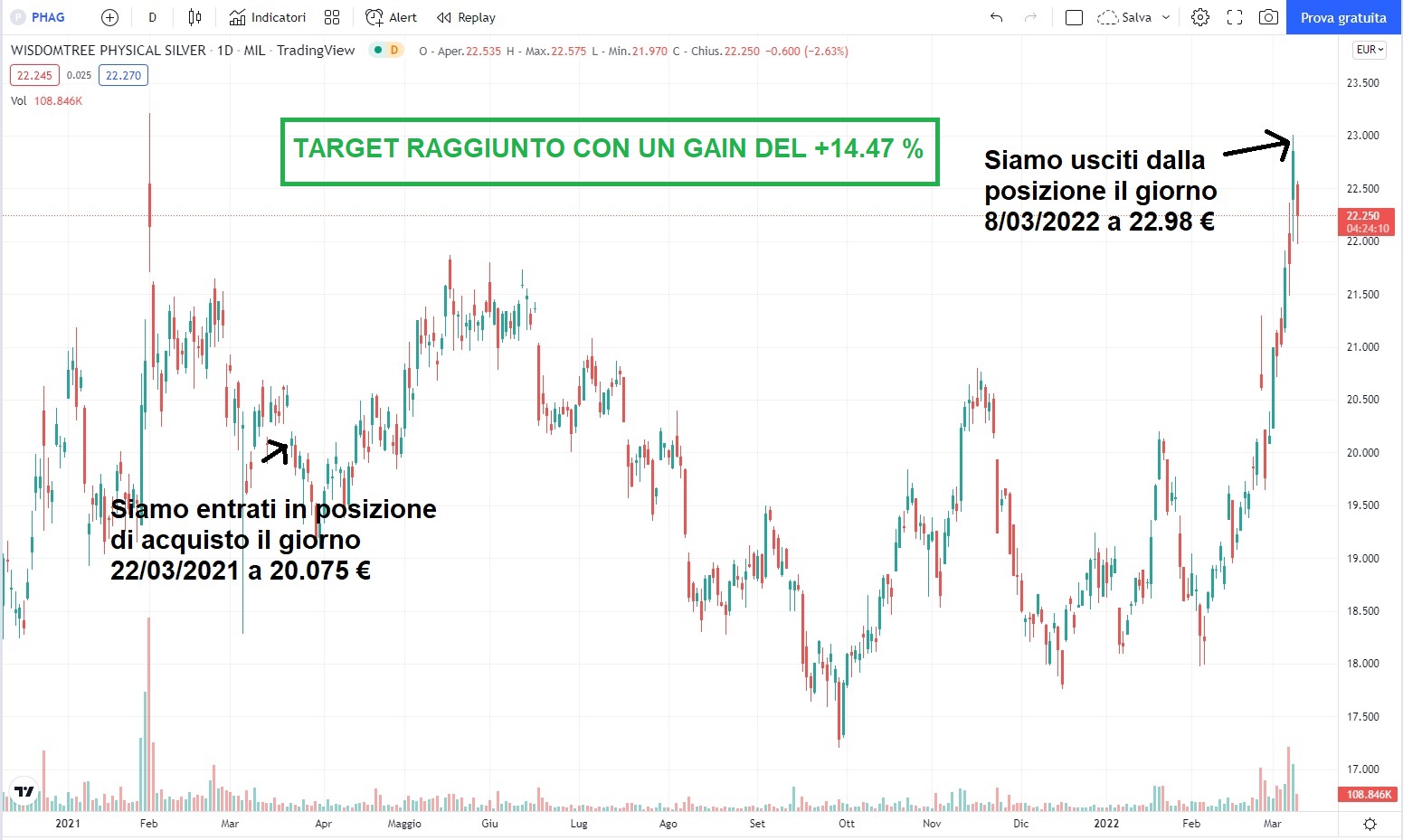 Siamo usciti dalla posizione ieri, 8/03/2022 ad un prezzo di 22.98 €.