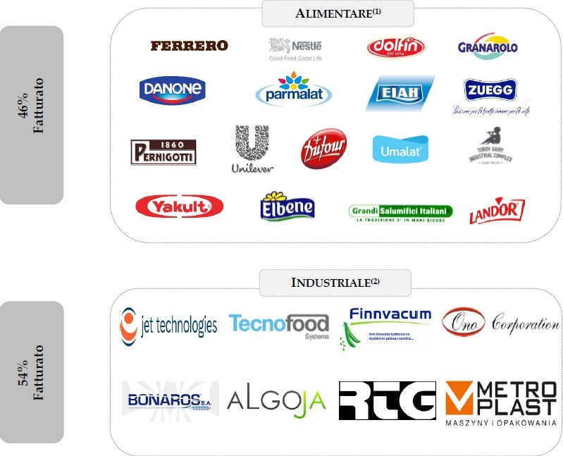 I principali clienti sono rappresentati dai principali operatori mondiali del settore alimentare e dai grandi gruppi impiantisti che assemblano poi il prodotto finito e lo rivendono ai clienti finali.
