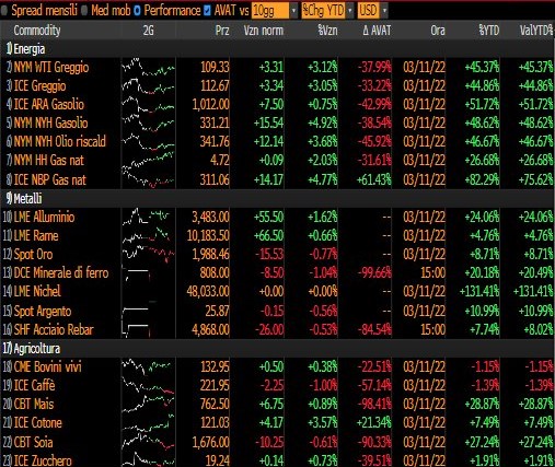 Sul fronte delle materie prime non si registrano discontinuità rispetto al recente passato: il comparto energetico strappa ancora al rialzo.