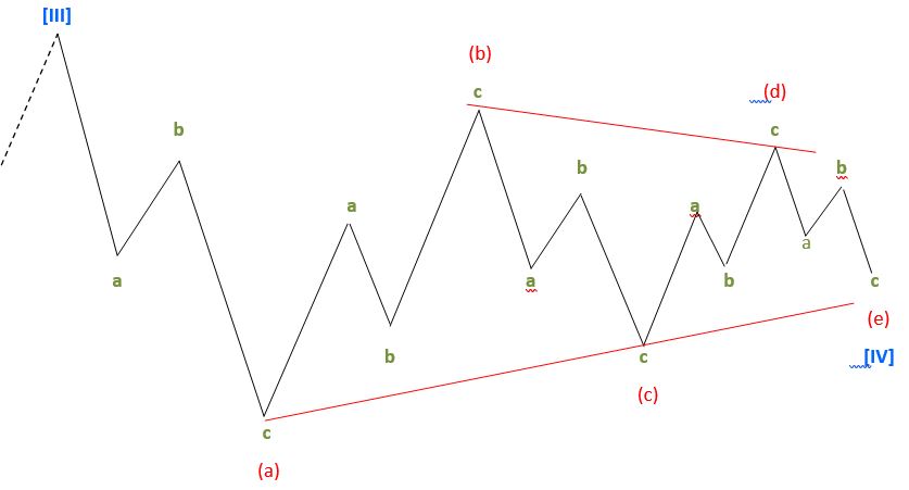 Se sarà un triangolo, a livello di Super Ciclo (riga 5 della legenda) non avremo un semplice (a)-(b)-(c) come si vede in legenda, ma un modello (a)-(b)-(c)-(d)-(e). In altre parole non sarà un modello 5-3-5 come nei zigzag e nemmeno un modello 3-3-5 come nei flat, ma sarà un modello 3-3-3-3-3 come accade nei triangoli.
