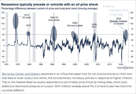 Quello di cui tutti e Tomasini in testa hanno paura è quanto viene indicato nel grafico precedente da uno studio che tutti nell’ambiente conoscono: le crisi energetiche spingono alla recessione non tanto per il rincaro dei prezzi energetici quanto per le politiche monetarie restrittive che seguono il rincaro dei prezzi stessi.