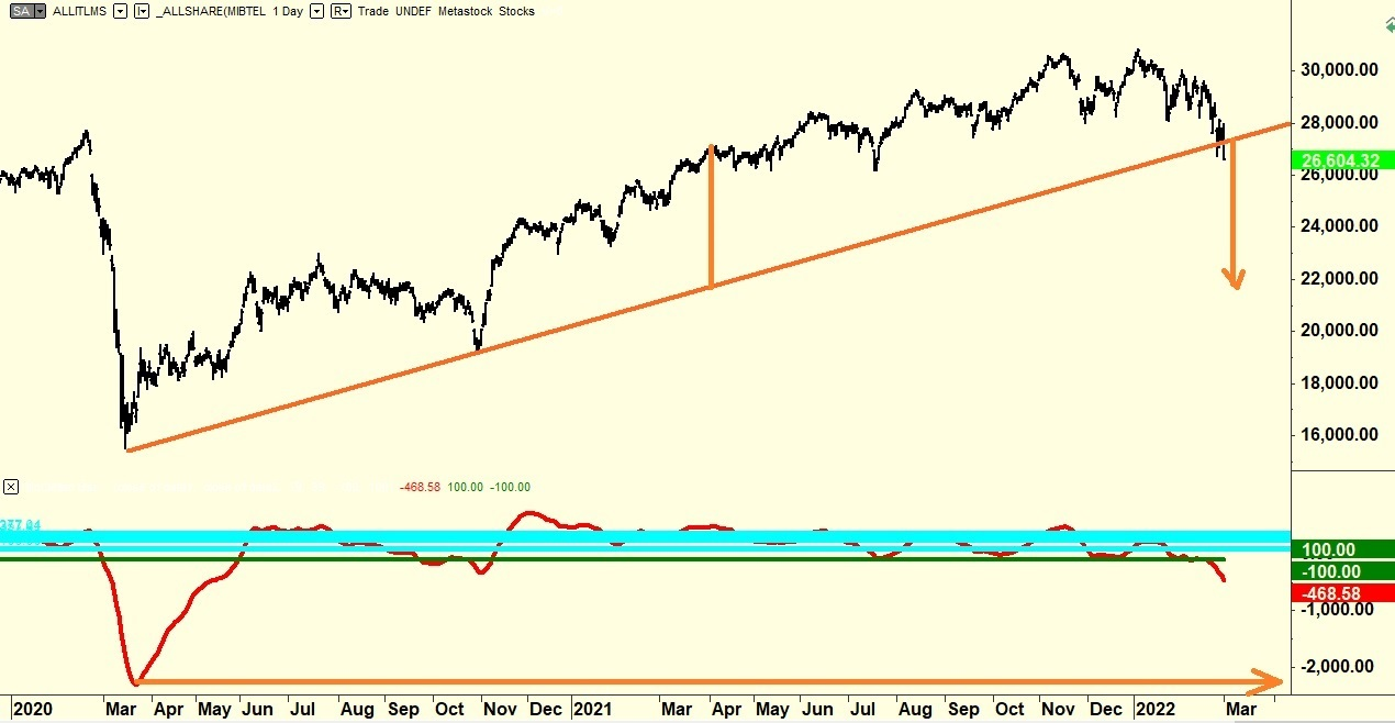 Oggi il nostro Ftse All Share ha rotto una trendline che regge questo mercato dal marzo 2020 e l'obiettivo è quota 22.000 del Ftse All Share.
