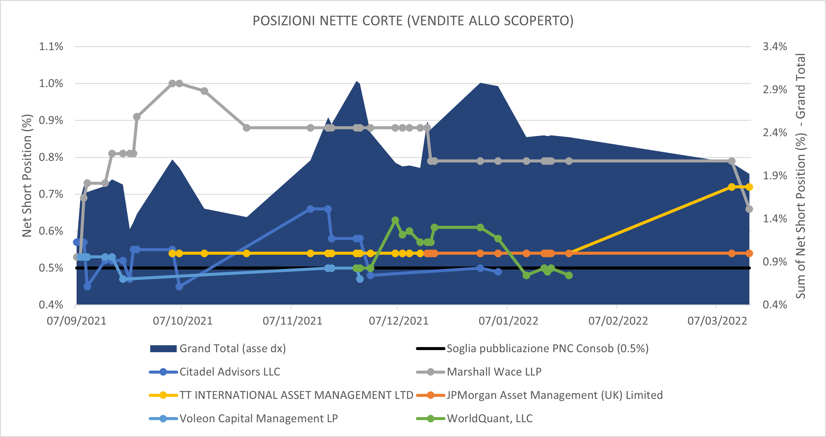 Al 16 marzo, in totale le posizioni short delle cosiddette “mani forti” sono pari all’1.92% del capitale sociale di Esprinet.