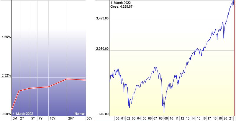 Attenzione va posta anche alla curva dei rendimenti, spesso anticipatrice di crisi. Ve ne avevo parlato qualche settimana fa ed anche alla fine del 2020, mostrando come si stesse invertendo solo nella parte sopra i venti anni. Ad oggi pare che la curva stia tendendo ad un appiattimento generalizzato nella parte a breve (anche se non si è ancora palesato completamente) ma costituisce certamente un segnale da non sottovalutare. Ricordiamoci che il mercato americano è sì sceso ma in misura nettamente inferiore al resto delle Borse.