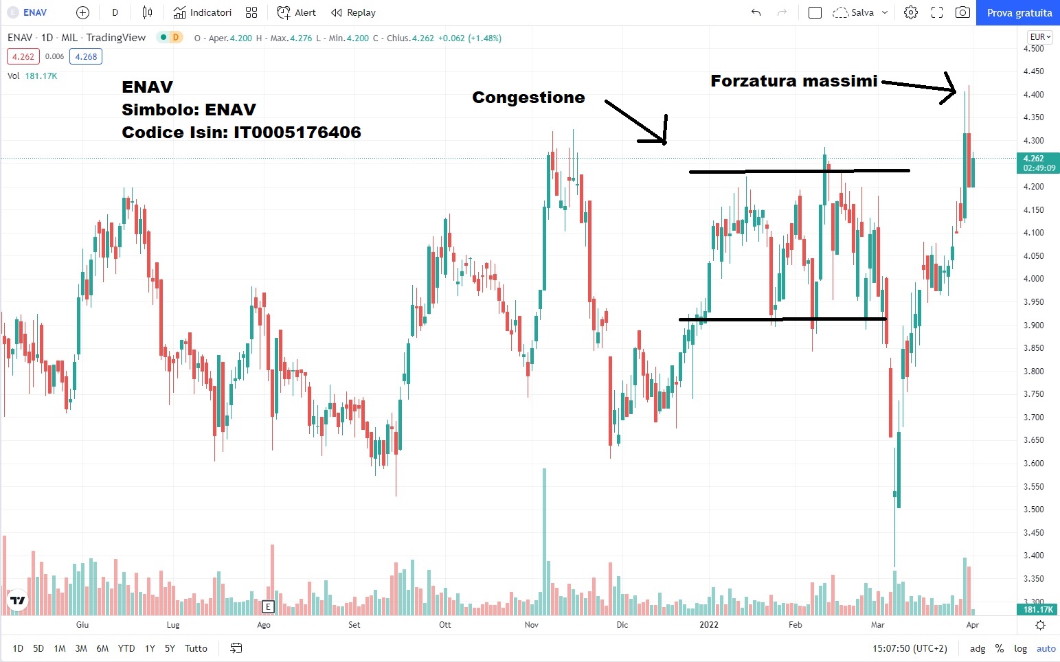 ENAV: tecnicamente sta forzando i massimi di una lunga congestione ma francamente i dati fondamentali non sono un granché e la valutazione è molto elevata: p/e a 57 con PEG ratio a 5.99 (sottovalutato sotto 1) e un entreprise value su EIBT a 49. Bassa redditività e debito in aumento anche se interest coverage a 7.49 e debt to equity a 0.38. Secondo me non riesce a frantumare i massimi della congestione e ci ricasca dentro.