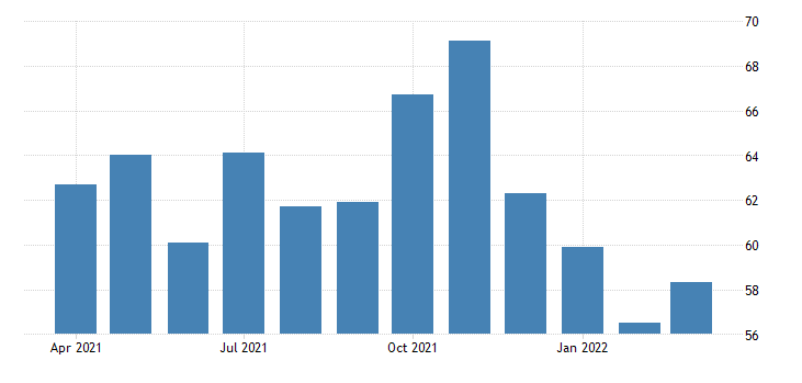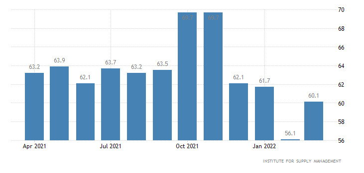 Nello specifico, il dato relativo ai nuovi ordini balza dai 56,1 punti di febbraio ai 60,1 punti di marzo.