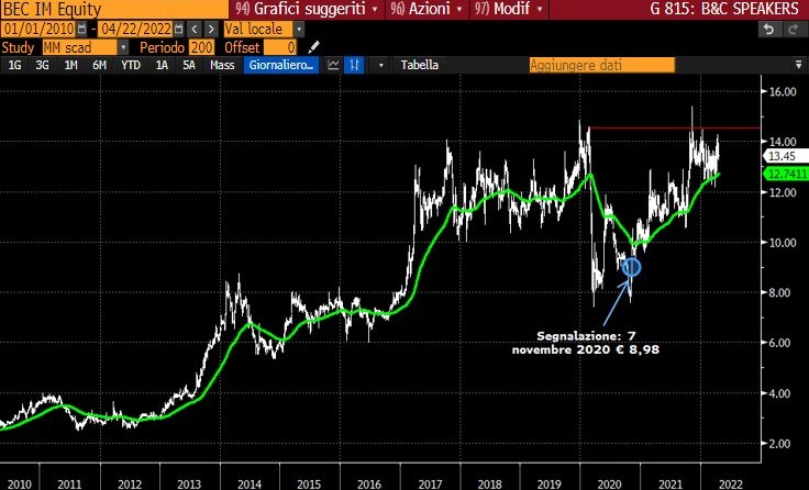La segnalazione di B&C SPEAKERS risale al novembre 2020. Il titolo sta indubbiamente dando una discreta soddisfazione a chi ha seguito l’indicazione (+49,78%).
