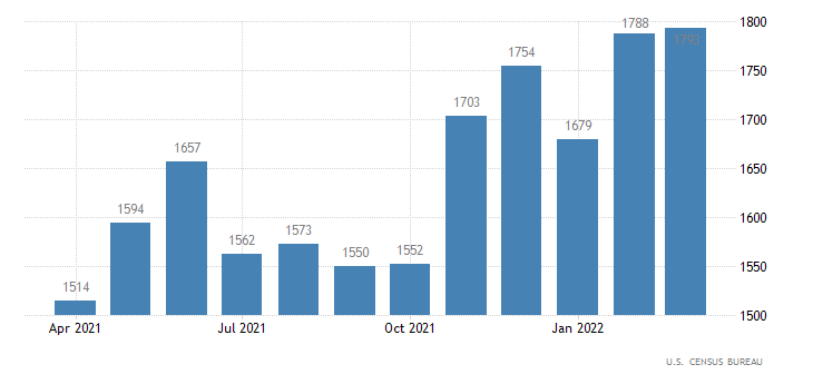 Sempre nel mese di marzo è iniziata la costruzione di 1,793 milioni di case, numero che segnala una crescita dello 0,3% rispetto a febbraio, quando il dato si è attestato a 1,788 milioni (rivisto da 1,769 milioni). Per marzo il consensus indicava un calo a 1,745 milioni. I due dati sono rilasciati dall’U.S. Census Bureau