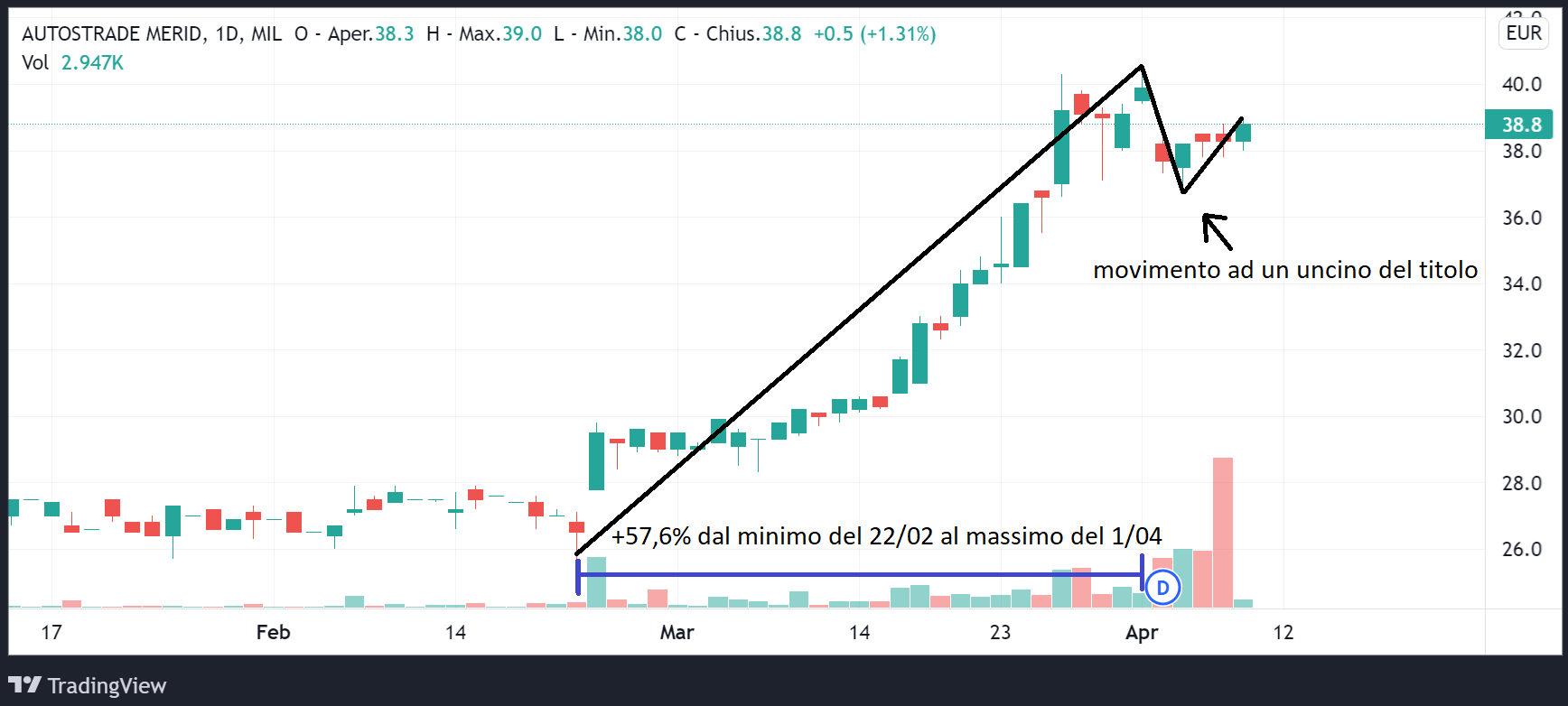 Autostrade Meridionali venerdì si presentava sulla lista elaborata dall’indicatore proprietario con un Lombard Stock Index di 25, il decimo dell’elenco. Osservando il grafico salta subito all’occhio il sentiero rialzista che il titolo ha iniziato a percorrere da fine febbraio; in un mese e mezzo circa, Autostrade Meridionali ha registrato una crescita di oltre il 57%, passando dal minimo di 25,7 del 22 febbraio al massimo di 40,5 dell’1 aprile. Dopo aver toccato questo massimo la quotazione ha invertito la rotta per un paio di sedute: nello specifico il 4 aprile il titolo ha aperto con un gap down a 38,2 arrivando a toccare un minimo di 37,3 e chiudendo a 37,7; il 5 aprile è stato registrato un minimo ancora più basso, di 36,8, ma con una chiusura a 38,2. Nelle tre sedute successive è stato completato l’uncino con due chiusure a 38,3 ed una a 38,8 e tre massimi crescenti. Il 31 marzo l’azienda ha comunicato il passaggio della concessione della gestione dell’A3 Napoli – Pompei – Salerno al concedente Ministero delle Infrastrutture e della Mobilità Sostenibili e la contestuale consegna al nuovo concessionario Salerno Pompei Napoli, aggiudicataria della gara per concessione della tratta autostradale. Il valore di subentro in favore di Autostrade Meridionali è di 440.127.709 euro. Nell’esercizio 2021 il totale dei ricavi di Autostrade Meridionali ha toccato quota 89,9 milioni di euro contro i 67,7 del 2020; in crescita anche l’EBITDA passato dagli 11,2 milioni di euro del 2020 ai 29,8 milioni di euro del 2021. L’utile dell’esercizio è passato dai 4,0 milioni di euro del 2020 ai 16,0 milioni di euro del 2021.