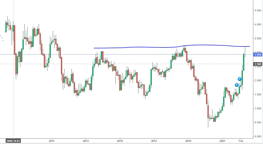 Ottima la seduta di venerdì ma non perché l'azione ha avuto un rialzo che sfiora il +10%. View sempre short sul titolo ma è possibile che sia in corso un tentativo di short squeeze pre aumento di capitale che sarà molto diluitivo e che avverrà dopo l'accorpamento azionario (misura che non è mai presa bene). In altri termini credo che ogni rialzo sia buono per mettere un chip short con l'idea di mediare la posizione tre o quattro volte (quindi size ridotta tutte le volte) in attesa dell'aumento di capitale. Aree di intervento iniziali (quindi non parlo di livelli precisi) sono attorno a 1.085 e poi a 1.13/1.15 ed infine a 1.20. Lo stop? Sopra 1.50. L'importante è non andare long!