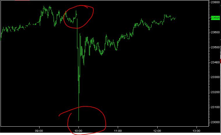 Buon inizio maggio a tutti. Circa un paio d'ore fa c'è stato un flash crash sul mercato italiano (ma parzialmente anche su Parigi e sul Dax). Improvvisamente alle 9.58 qualcuno ha iniziato a vendere i derivati e di conseguenza tutto il paniere grazie ai software. Indistintamente. E così mezzo listino è stato sospeso per eccesso di ribasso, con molte azioni che hanno perso oltre il 5% ed il derivato crollato di ben 700 punti in un paio di minuti. Molti stop sono inevitabilmente saltati. Il tutto è avvenuto in TOTALE ASSENZA di qualunque notizia: niente guerra, niente dati macro.