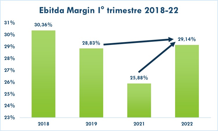 L’Ebitda Margin % si è attestato infatti al 29,14%, in netto miglioramento rispetto al 2021 (25,88%) e al di sopra del risultato registrato nel 2019 (28,33%).