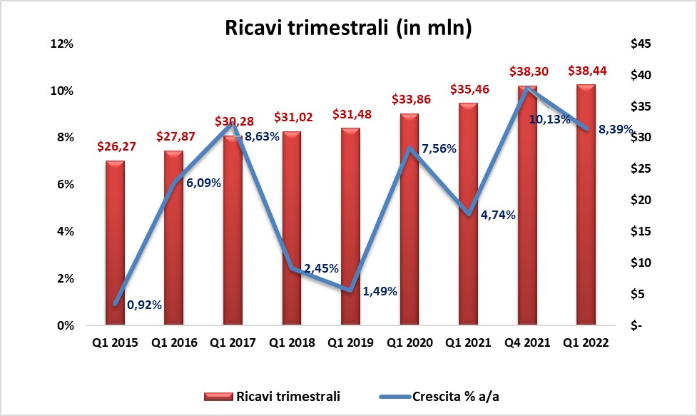 NATIONAL RESEACH ha registrato nel corso del Q1 2022 una buona crescita del fatturato (+8,8%) che si è attestato a $ 38,44 mln (record per il I° trimestre).