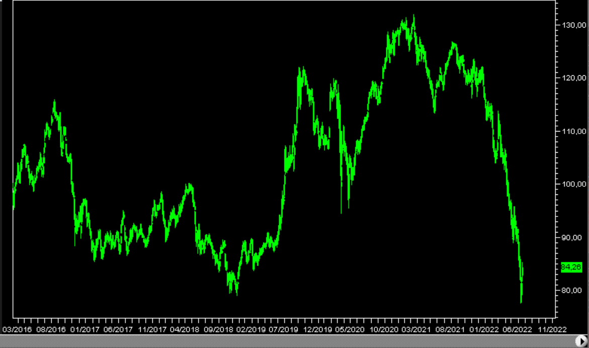 Con questa presa di coscienza, avevamo già da mesi, oramai settimanalmente avvertito di una discesa dei mercati che, reggetevi forte, in America è più che conclamata per il Nasdaq, meno per il Dow Jones che attende la soglia ai 29800 punti, sporcati e poi ripresi, per salutare gli anni dell'euforia e di bisboccia, e tornare ad una vita equilibrata, non senza prima passare per le forche caudine di una bella cura dimagrante. La discesa infatti, quella vera, inizierà sotto 29800 sempre che vengano infranti, ma, uomo avvisato mezzo salvato, la discesa, quella vera, inizia da li e non di certo dai 37000 apicali di qualche mese fa.
