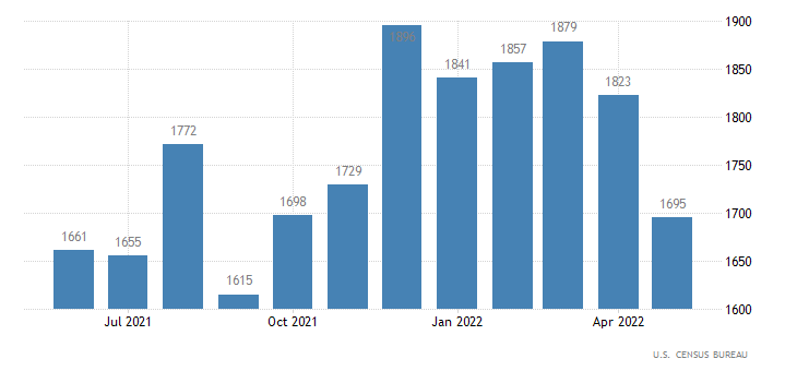 I permessi di costruzione a maggio hanno segnato una contrazione del 7%: ad aprile ne emessi erano stati 1,823 milioni (dato rivisto da 1,819 milioni), mentre a maggio ne sono stati emessi 1,695 milioni. Il consensus prevedeva un calo più contenuto, ad 1,785 milioni. Il dato è rilasciato dall’U.S. Census Bureau.
