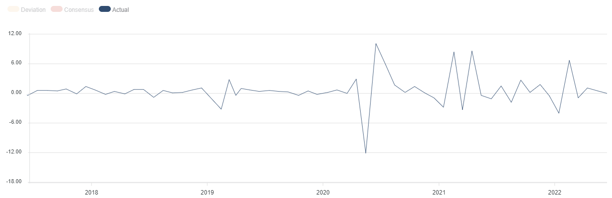 Contrazione per le vendite al dettaglio, che a livello mensile a maggio registrano un -0,3% andando in direzione opposta rispetto al consensus che prevedeva un rialzo dello 0,2% dopo il +0,7% di aprile (rivisto da +0,9%).