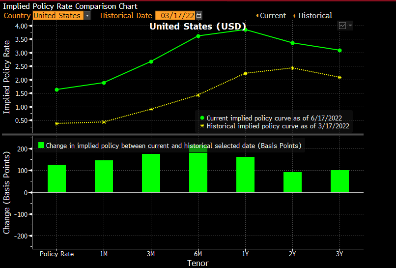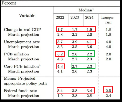 Per quanto riguarda gli investimenti di carattere monetario, L’inizio della settimana scorsa in attesa del FOMC ha portato un brusco rialzo dei rendimenti su scala globale. Il Treasury USA 10Y ha toccato il nuovo tetto del 3,495% con, ancora una volta, l’essere stati i tassi reali a guidare il movimento, risaliti allo 0.80%. Ma dopo la decisione della FED, il mercato USA ha reagito con un calo dei rendimenti a doppia cifra, sia sulle brevi scadenze (2Y) che quelle a lunga (10Y). Il motivo del movimento è da ritrovare nelle parole di Powell che ha ridotto le aspettative del mercato sulla dimensione degli aumenti futuri ma anche dalle nuove proiezioni di crescita dell’economia, riviste decisamente al ribasso con disoccupazione in aumento.