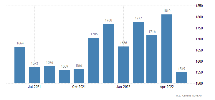 Contrazione ancora più significativa per il dato riferito al numero di case per le quali è iniziata la costruzione, che a maggio segna un -14,4%. Il dato è passato da un numero di case in costruzione ad aprile pari a 1,810 milioni (rivisto da 1,724 milioni) agli attuali 1,549 milioni, contro una previsione fissata a 1,701 milioni. E' evidente che, tra questo dato e quello dei permessi, il mercato immobiliare sta svoltando: le scorte iniziano a salire rapidamente, le vendite calano ed aumentano i venditori che tagliano il prezzo per concludere la compravendita. Il dato è rilasciato dall’U.S. Census Bureau.