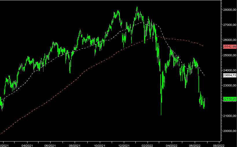 Per quanto riguarda l'Italia, inevitabilmente condizionata da piazze maggiori, vede il nostro indice Ftse Mib incastonato in una gabbia che ha come valore alto i 22850 e i 21200 come supporto basso, con uno switch posizionato ai 21750 importante in questo momento storico perchè la perdita di questo appiglio e del successivo, aprirebbe la strada ad affondi più drastici sino ai 19500 punti.