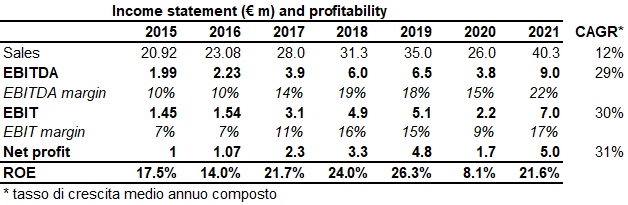 • presenza nei mercati internazionali (nel 2021 circa il 90% del fatturato deriva da vendite su mercati esteri);