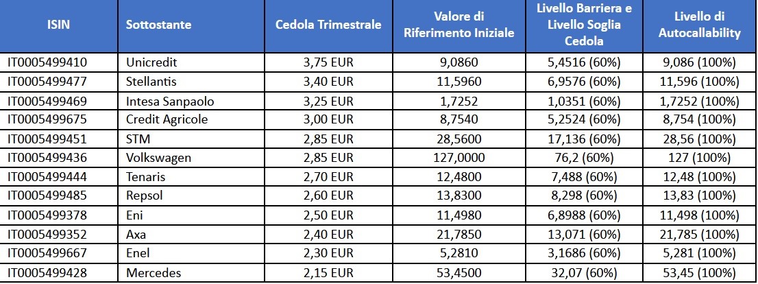 â–º Certificati: cedole trimestrali, taglio 100 € e sottostanti singoli. Creati per il retail