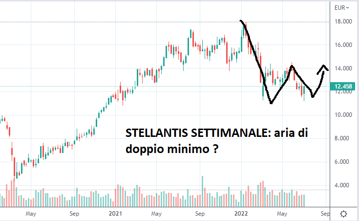 Veniamo ai grafici di borsa degli indici di Wall Street e di Milano: sostanzialmente Wall Street regge sui minimi precedenti facendo prefigurare un doppio minimo in formazione (configurazione rialzista). Milano è sprofondata di più perché la crisi del gas colpisce più i fessi di europei che si sono messi in mano ai russi per il gas piuttosto che gli americani ma ora sembra avere trovato un fondo. E’ chiaro che l’estate non è foriero di grandi rialzi almeno statisticamente però non mettiamo i buoi davanti al carro: potrebbe essere semplicemente un movimento orizzontale quello che i mercati vogliono intraprendere.