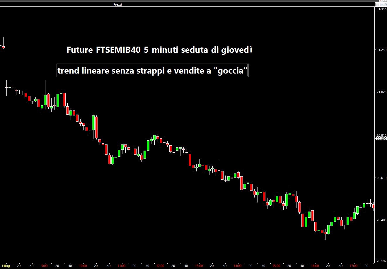 Come ripeto ormai da diverse settimane a questa parte ritengo che il mercato italiano non abbia nulla di particolare da offrire in questo periodo e non nascondo nemmeno che i bassissimi volumi di contrattazione rendono difficilissimo operare anche in intraday. E' meglio in questi frangenti spegnere il pc e mettersi a studiare aspettando che nuove opportunità si presentino nuovamente ed essere così pronti a colpire senza indugi.
