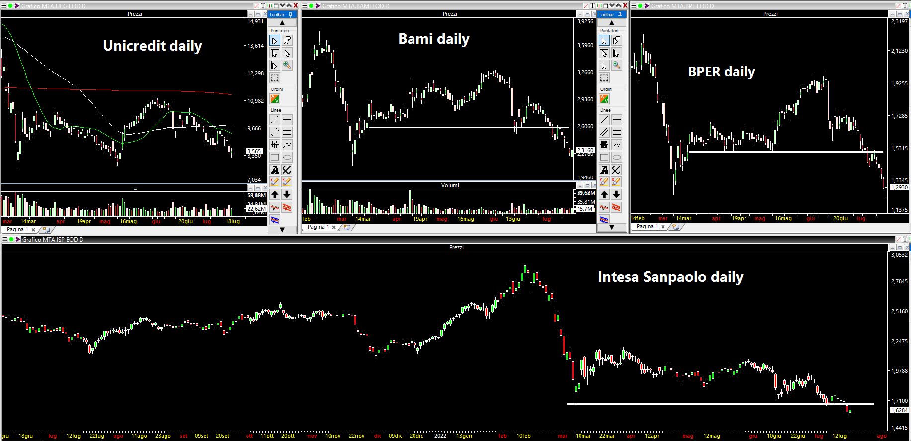L'incertezza politica si riflette quindi sull'andamento del nostro indice principale, con gli operatori che non vendono direttamente i titoli di stato ma le banche che li detengono in portafoglio. E la debolezza del comparto la si è vista già da molto tempo (link articolo: https://www.lombardreport.com/2022/7/2/borsa-previsione-azioni-saipem/). La Borsa anticipa sempre tutto.