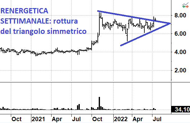 RENERGETICA: crescita del fatturato a 3 anni del 50.2%, crescita dell’ebitda a 3 anni del 29.5%, margine operativo lordo del 34.83% quota la metà del fair price. Ha problemi di liquidità per cui conviene comprare quando vola e se vola
