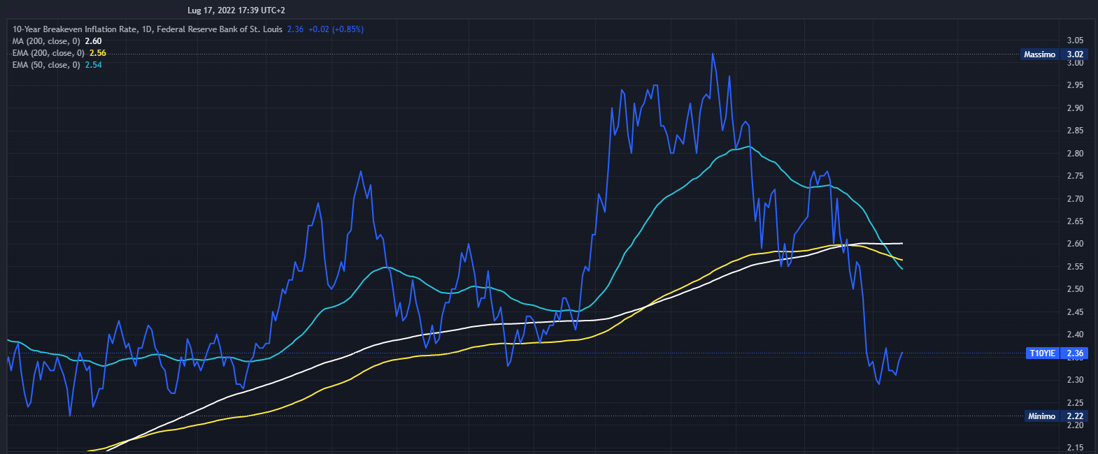 Ovviamente anche i titoli di Stato agganciati all’inflazione, dopo il dato del CPI hanno ripreso un po' vigore, ma rimangono sempre sui minimi di due anni fa in considerazione del fatto che il picco inflattivo sia stato visto.