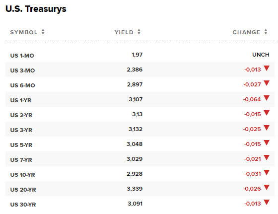 Con il punto più alto sul 3 anni al 3.14%, il 10 anni oltre 20 bps sotto il 2 anni, e anche il 30 anni sotto il 2 e il 3 anni. Il quadro recessivo è ancora ben incorporato nel mercato dei tassi.