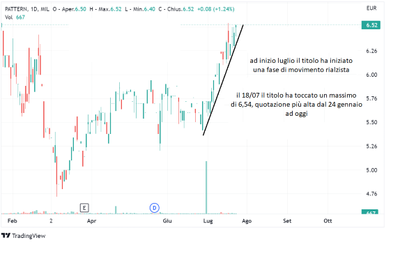 Pattern è un’azienda che si occupa di progettazione, ingegneria e produzione di capi sfilata per brand del fashion luxury internazionale. È quotata sul mercato Euronext Growth Milan di Borsa Italiana. Sabato si presentava nella lista elaborata dall’indicatore proprietario del nostro giornale con un Lombard Stock Index di 3. Ma entriamo nel dettaglio con un’analisi grafica e fondamentale.