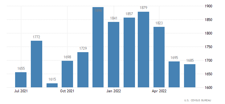 Nel mese di giugno i nuovi permessi di costruzione sono diminuiti dello 0,6% passando dal dato di 1,695 milioni di maggio al dato attuale di 1,685 milioni contro una previsione di 1,650 milioni. Il dato è rilasciato dall’U.S. Census Bureau.