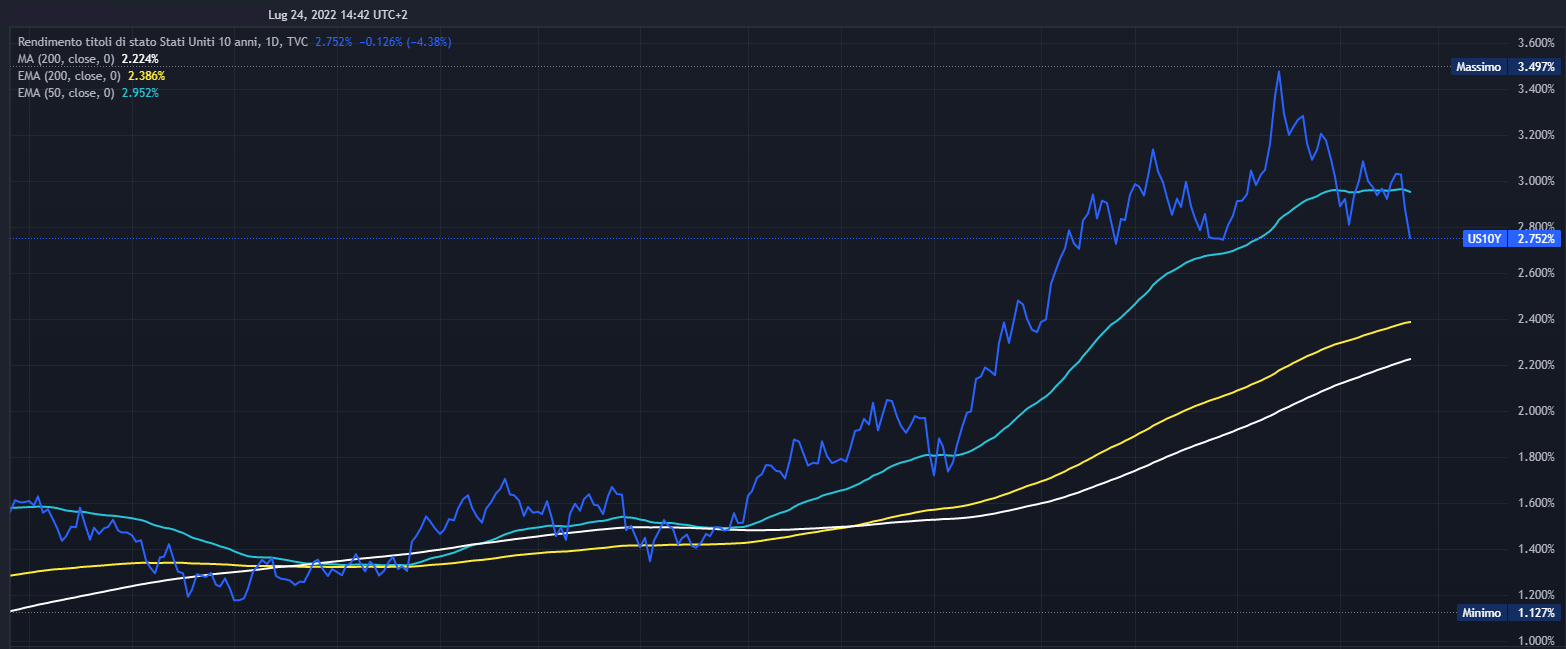 Con il periodo di blackout attivo in vista della riunione del FOMC, in programma per domani e dopodomani (26-27 luglio), quella appena terminata è stata una settimana “di silenzio” alla banca centrale statunitense. Silenzio al quale si aggiunge un sentimento di attesa per quelle che saranno le prossime mosse della FED in materia di politica monetaria. Oltre alle decisioni del FOMC, questa settimana sono previste le pubblicazioni di alcuni importanti dati macroeconomici a partire dalle vendite di nuove case, passando per il dato preliminare del PIL per il secondo trimestre dell’anno, l’indice di prezzo delle spese per consumi personali e l’indice di fiducia dei consumatori elaborato dall’Università del Michigan. Ma non solo, in settimana saranno pubblicate anche i report sui risultati di Microsoft, Apple, Alphabet, Amazon e Meta.