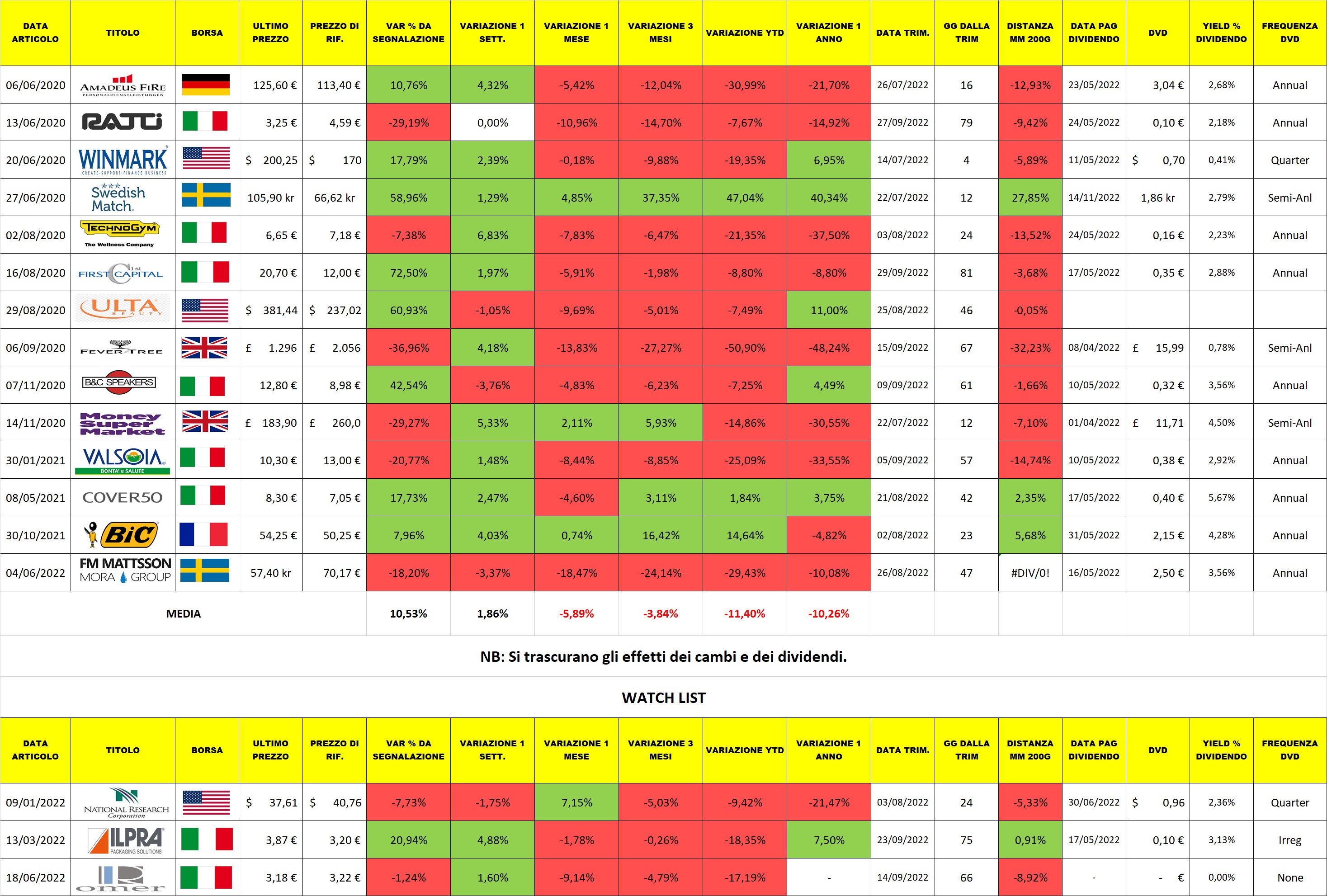 Attraverso una costante attività di scouting, è possibile individuare, tra la moltitudine delle varie alternative, quale siano le opportunità. Il disallineamento tra prezzo e valore rappresenta solamente un elemento necessario ma non sufficiente per operare. La fretta non aiuta: in una fase come questa è più saggio studiare bene il mercato, individuare le potenziali opportunità ed attendere…. La borsa è sempre aperta.
