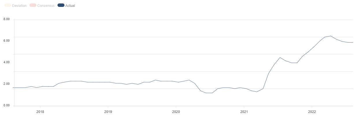 Il dato core annualizzato, invece, a luglio è al 5,9% come a giugno e appena sotto al consensus del 6,1%. I dati sono rilasciati dall’U.S. Bureau of Labor Statistics.