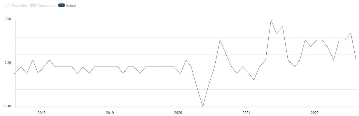 Il dato core (che esclude il settore del cibo e dell’energia) dell’indice dei prezzi al consumo, a livello mensile a luglio si attesta allo 0,3%, al di sotto del consensus fissato a 0,5% e della rilevazione di giugno di 0,7%.