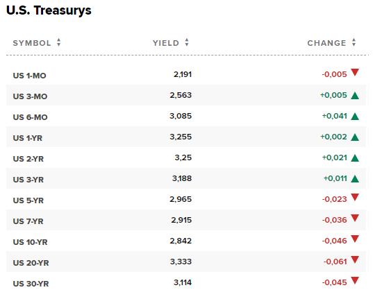 Infatti notiamo, rispetto alla scorsa settimana, come tutte le scadenze brevi dei titoli di stato USA abbiano subito un rialzo, con il tratto 2-10Y che continua ad essere invertito chiudendo la settimana ad un nuovo minimo di - 41 bps.