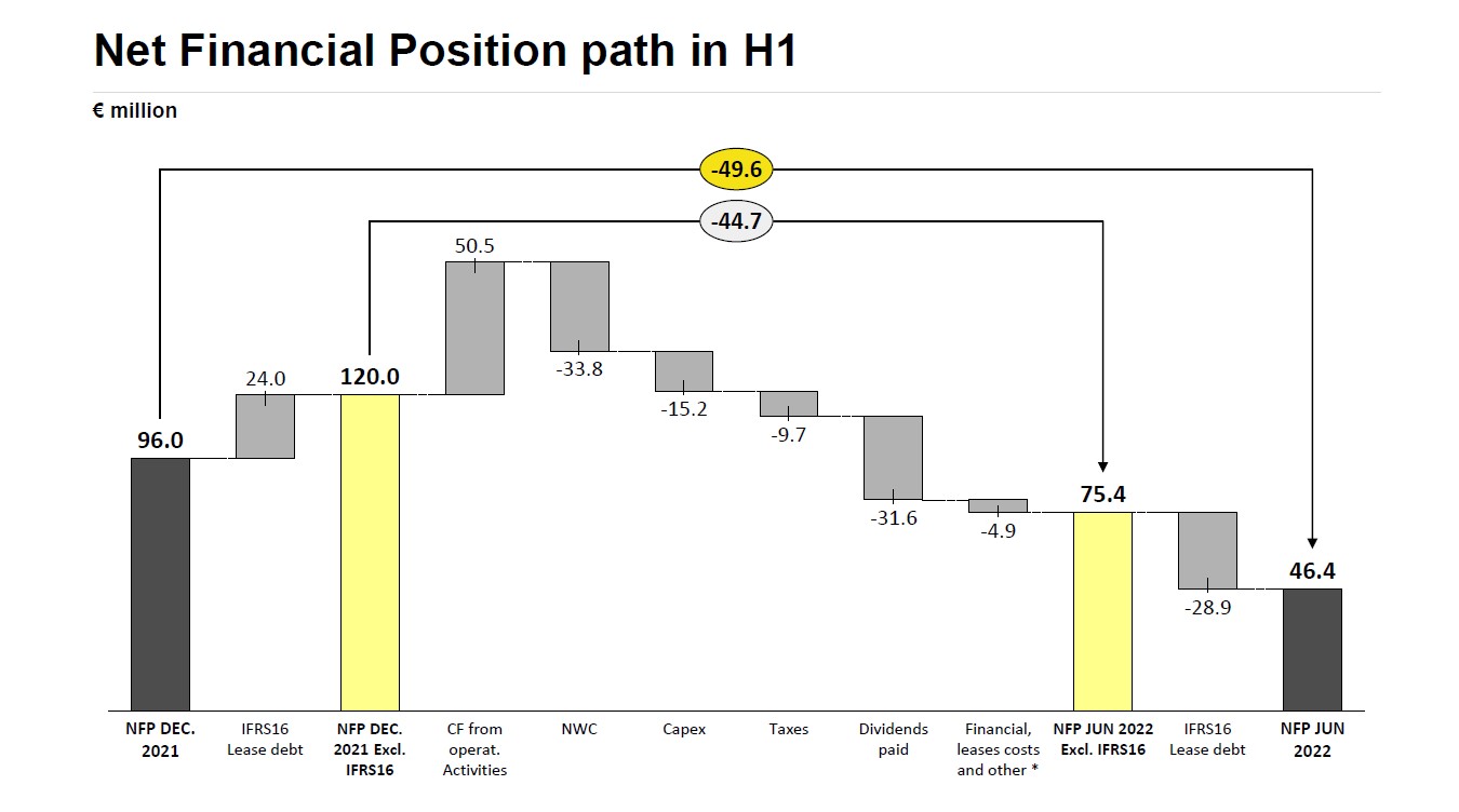 PFN (Cash – Debiti finanziari) DI TECHNOGYM I° SEMESTRE 2022:
