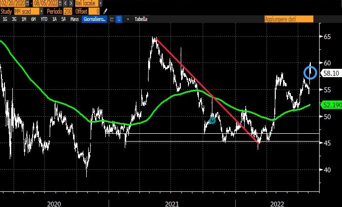 Il titolo nel 2022 sta dimostrando una straordinaria forza relativa (+22,78%).