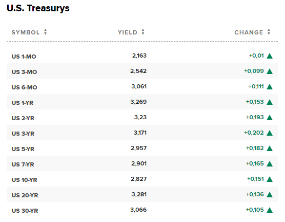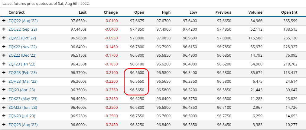 Sempre a seguito dei dati macro usciti, la Fed Funds strip, che vedeva i tassi raggiungere il picco tra dicembre e gennaio prossimi circa al 3.25%, ora il picco si è spostato, ovviamente, in avanti di un paio di mesi, esattamente tra febbraio, marzo ed aprile 2023: