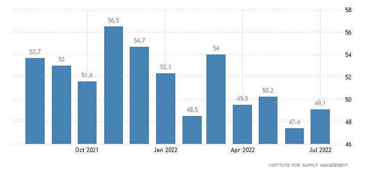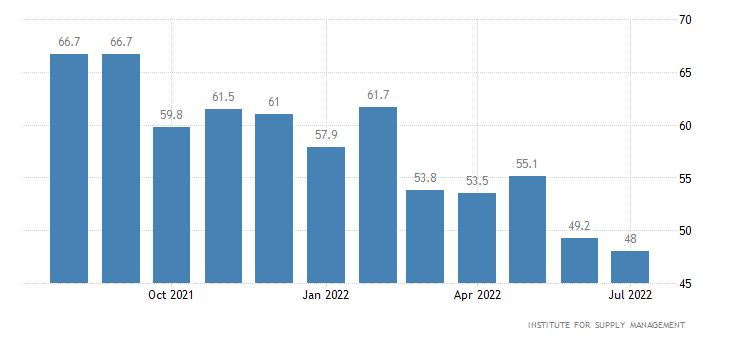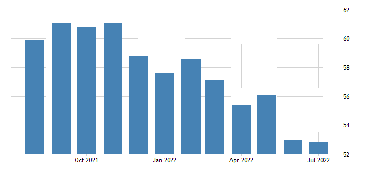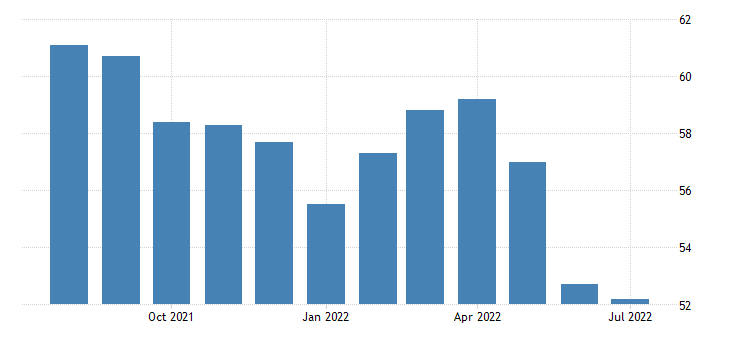 I nuovi ordini invece per il secondo mese consecutivo scendono, passando dai 49,2 punti di giugno ai 48,0 punti di luglio.