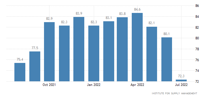 Il PMI manifatturiero rilasciato da ISM, invece, nel mese di luglio è pari a 52,8 punti, appena sotto al dato di giugno di 53,0 punti, ma oltre al consensus di 52,0 punti.