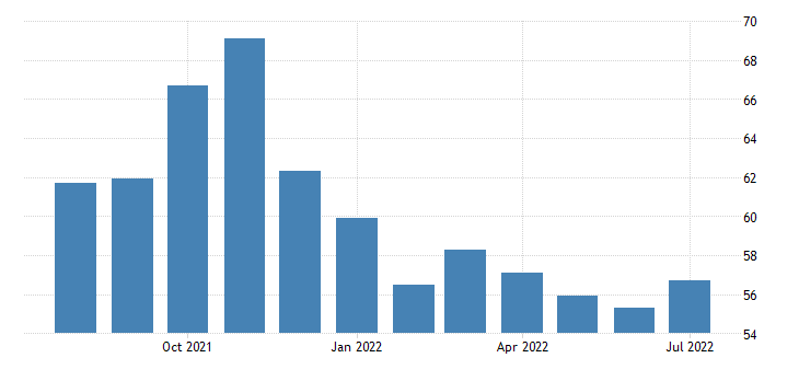 Balzo in avanti anche per i nuovi ordini: dai 55,6 punti di giugno ai 59,9 punti di luglio.