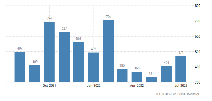 Nel settore non agricolo privato i posti di lavoro creati a luglio sono stati 471 mila, anche in questo caso oltre al consensus fissato a 230 mila e al dato di giugno di 404 mila (rivisto da 381 mila). I dati sono rilasciati dall’U.S. Bureau of Labor Statistics.